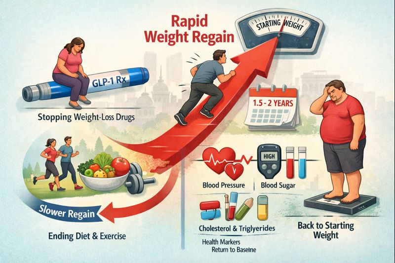 The Oxford team reviewed data from 37 clinical studies involving 9,341 adults who had taken weight-management drugs and then stopped. On average, participants regained about 0.4 kg (0.9 lb) per month after discontinuing medication. At that pace, most would return to their starting weight within 18 to 24 months.